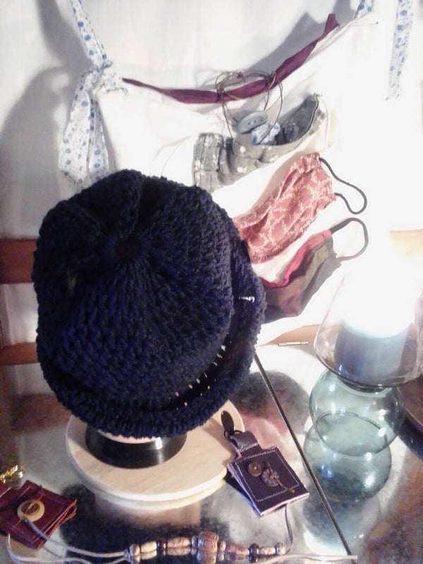 Ein schöner Hut, sehr angenehm zu tragen. Weicher Wolle/ Acryl Mix, die Farbe ist dunkelblau.